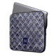 This elegant laptop sleeve features a navy blue and faux silver look deco fans pattern, personalised with your monogram.