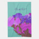 Modern Art Happy Colourful Flowers +Custom Name Tea Towel