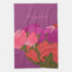 Modern Art Happy Colourful Flowers +Custom Name Tea Towel