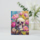Modern Art Still Life Abstract Skull and Flowers Postcard