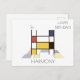 Classy, funny, artistic monogram. Here is the letter "H". Neoplasticism style, or De Stijl, line and colour artistic decoration, the funny bird sits on the letter. The field of art is located under the letter. The template name "HARMONY" is located under the image. Happy Birthday! text near the image. You can change or delete all the texts, and you can change the image. Unique, one-of-a-kind postcard for a birthday or another event. Feel free to use the "Edit Design" or "Personalise" (as the case may be) button of the blue colour to change the font, colour, or position of the template text. Be creative, customise, buy one, and be happy!