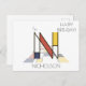 Nice, funny, artistic monogram. Here is the letter "N". Neoplasticism style, or De Stijl, line and colour artistic decoration, the funny bird sits on the letter. The field of art is located under the letter. The template name "NICHOLSON" is located under the image. Happy Birthday! text near the image. You can change or delete all the texts, and you can change the image. Unique, one-of-a-kind postcard for a birthday or another event. Feel free to use the "Edit Design" or "Personalise" (as the case may be) button of the blue colour to change the font, colour, or position of the template text. Be creative, customise, buy one, and be happy!