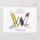 Polished, funny, artistic monogram. Here is the letter "W". Neoplasticism style, or De Stijl, line and colour artistic decoration, the funny bird sits on the letter. The field of art is located under the letter. The template name "WILLIAM" is located under the image. Happy Birthday! text near the image. You can change or delete all the texts, and you can change the image. Unique, one-of-a-kind postcard for a birthday or another event. Feel free to use the "Edit Design" or "Personalise" (as the case may be) button of the blue colour to change the font, colour, or position of the template text. Be creative, customise, buy one, and be happy!