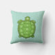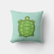 Modern Artistic Green Tortoise on Light Teal Cushion
