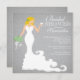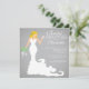 Stylish modern Blonde bride wedding shower invitation features a chic modern bride toasting with a wine glass while holding a beautiful bouquet of fall autumn green wedding flowers set on a printed on paper popular grey grey linen background with stand out white text. Our modern bride bridal shower invitation is perfect for a popular wine bridal shower celebration. Visit our shop to view this beautiful bridal shower invitation in a large selection of floral bouquet colours and different bride variations.
