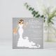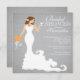Stylish modern brunette bride wedding shower invitation features a chic modern bride toasting with a wine glass while holding a beautiful bouquet of fall autumn orange wedding flowers set on a printed on paper popular grey grey linen background with stand out white text. Our modern bride bridal shower invitation is perfect for a popular wine bridal shower celebration. Visit our shop to view this beautiful bridal shower invitation in a large selection of floral bouquet colours and different bride variations.