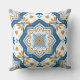Modern Azulejo Blue Yellow Portuguese Pattern Cushion