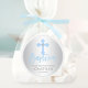 Modern Baby Blue Cross Baptism Boy Thank You Classic Round Sticker