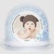 Modern Baby Boy First Christmas Photo Icy Blue Snowglobe