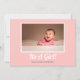 Celebrate your upcoming arrival with this modern and elegant baby girl shower invitation featuring a soft baby pink border and space to add your own precious photo. The card boldly announces "It’s a girl!" in a stylish, contemporary font, perfectly blending minimalist design with charming details. Customise the message and names to create a heartfelt invitation that warmly welcomes friends and family to your special celebration.