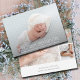 Elegantly sweet birth announcements feature your favourite newborn photo in full bleed with your baby's name and birth stats in white chic lettering on the front. A photo collage and parent's names on the back. **TIP: You may want to size the 2 square photos on the back BEFORE uploading them for easy placement. MATCHING items in our collection.