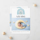 Elegant Modern Minimalist Stylish Boho 2 two Photos Birth Announcement Card Introducing, welcome, hello worl, baby newborn with beautiful hand drawn watercolor blue tones rainbow. Personalise this beautiful card with your newborn baby photos and birth stats. Please replace the sample photos with your own. Photos sample courtesy of https://pixabay.com/es/users/bongbabyhousevn-15950077/.