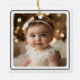 Modern Baby Photo Christmas Black and White Script Ceramic Ornament