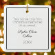 Modern Baby Photo Christmas Black and White Script Ceramic Ornament: This sleek, modern ornament celebrates baby’s first Christmas with one side displaying your favourite baby photo framed by a black outline. The other side features the sweet text, "Tiny hands, tiny feet, Christmas memories oh so sweet," along with a personalised name in script font and the year, encircled by a minimalist black line. Perfect for new parents to commemorate a baby's first holiday season, adding a stylish and sentimental touch to the Christmas tree. Upload a favourite baby photo for one side, then add the name and year on the reverse. Click "Personalise this template" for a keepsake that holds precious Christmas memories.