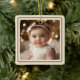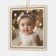 Modern Baby Photo Christmas Champagne Gold Script Ceramic Ornament