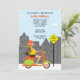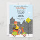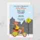 This unique baby shower invitation features a pregnant woman holding riding a colourful moped in the city. This invitation is just waiting to be customised with your details. Some elements Baby Star Design