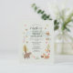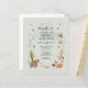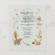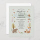Simply create a cute woodland animals baby shower invitation with this template featuring an owl, fox, bear, squirrel, deer, mushrooms and more for your cottage core theme shower for the mum-to-be.
