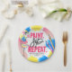 Bring a colourful touch to your paint and sip bachelorette party with art-themed plates which you can use for either food or as a paint palette. Simply customise with the name of the bride and date for a fun personal feel. Design features typography "paint sip repeat" as well as paint splatters complete with pink, yellow and blue paint splatters as well as hand painted paint palette, glass and paint brushes against a marble background.