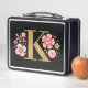 Go back to school in style with this pretty pink floral monogram lunchbox. It is decorated with a gold letter "K" surrounded by flowers. Designed for you by Blackberry Boulevard.