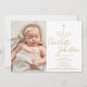 Modern Baptism Christening Golden Script Photo Invitation