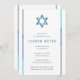 Simple modern Bar Mitzvah invitations featuring Star of David design with blue, teal and grey accents. Personalise online with your Mitzvah details.
