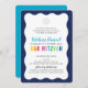 MODERN BAR MITZVAH rainbow colours wavy border blu Invitation