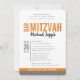 MODERN BAR MITZVAH trendy date orange grey Invitation