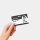 A modern staff badge with a professional layout featuring a barcode under the employee photo. Ideal as an employee ID for your business or workplace. Add your employee's photograph, name and occupation, as well as your own barcode. Optional information such as a badge ID number or expiry date can be included or left blank.