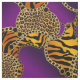 This modern baroque style pattern features leopard and tiger motifs with urban themed gold chains on purple. Great for kids room decor.