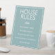 Modern Basic Teal House Rules Guest Pedestal Sign