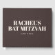 This personalised guest book features a rich brown cover with soft ivory cream typography and a bold, name-forward layout for a bat mitzvah celebration. Customise the name and date to create a keepsake guests can sign and families can revisit long after the event. The clean design works well for sign-in tables at temple ceremonies or reception entrances. A simple, meaningful piece that becomes part of the memory of the day.
