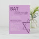 A modern Bat Mitzvah invitation that features the words Bat Mitzvah at the top and purple Star of David.