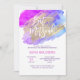 Lovely modern Bat Mitzvah girl celebration party. Big letters with watercolor blue purple colours design with faux gold brush stroke. Back has girl's name. Impress your guests with these invites!