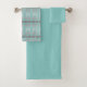 Stylish towel set in turquoise and grey accents, the turquoise pattern is removable or it can be switched to any colour. Add text to personalise.
