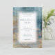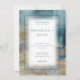 This design features a blue and gold abstract beach and water background, with text in a soft sea spray blurred text box. Modern and unique, it's perfect for a beach or waterside wedding. Created by Simply Farmhouse Press, it's part of the Modern Beach Abstract Wedding Suite.