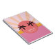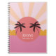 Custom modern pink yellow notebook with colourful design, sun, sunrise, sunset, palm tree, beach, landscape. Custom with name, firstname, monogram, initials, quotes, text, message for a gift . Simple pink and yellow notebook, journal for women, girls, teenagers, mothers, young adult, friends, students for shool, work, office, birthday's gift, christmas.