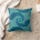 Modern Beach Teal Turquoise Wave Pattern and Wood Cushion