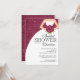 A stylish & chic bride holding a floral bouquet of wine plum coloured flowers wearing a white wedding gown set on a modern wine coloured background with tiny white string of horizontal lights. Our trendy bridal invitation features a matching back for that extra special touch. Visit our shop to view this popular wedding invitation in a large selection of background choices for an elegant spring bridal shower, summer bridal shower, fall bridal shower, winter bridal shower, autumn bridal shower.
