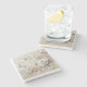 The coasters are gorgeous, a quality feel and heavy weight. They look like a precious archeological find. A rustic stone juxtaposed with a modern floral black and white print. I like the way the print goes slightly imperfect on the cut stone edges giving them a kind-of natural beauty.