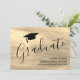 This modern and elegant graduation announcement card features stylish script typography on a sepia-coloured glass background with a graduation cap.