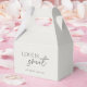 Custom-designed wedding and bridal shower favour boxes featuring "love is sweet" modern style typography on soft beige colour background.