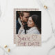 Modern and elegant, is this modern 'save the date' wedding postcard. On the front is your favourite couples photo with elegant 'Save the Date' calligraphy with heart details. On the reverse is space for you to add your details. Very easy to customise with your own information.
