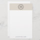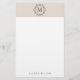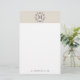 Add style to your stationery collection with beautiful, modern beige monogrammed stationery. The stationery's header features a beige background, decorative frame, and custom monogram. The design's footer features a personalised placeholder that is perfect for your name and contact information.