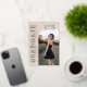 This beige photo graduation announcement features classic serif typography styled in a clean, modern layout for a warm and timeless look. A soft sand background is paired with rich espresso lettering and rose gold foil accents, creating an elevated neutral palette that feels both modern and refined. Fully customizable, the front allows you to personalize the graduate’s name, class year, school, and main photo. The coordinating back includes a matching beige background with a four-photo collage template, perfect for showcasing additional senior portraits. A sophisticated graduation announcement designed for those who love neutral tones, understated elegance, and modern classic design.© Kimbellished, LLC