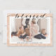 Modern Beige Pine Boughs Elegant Script Minimalist Holiday Card. Send customisable and personalised holiday greetings to friends, colleagues and family in simple, chic, elegant and modern photo design festive, natural minimalist style cards! A beautiful calligraphy of " blessed " in frames your photo in front. Below the photo features your custom greeting message from your family name in modern typography. Reverse to reveal a beautiful pink floral & pine tree boughs pattern paper background.