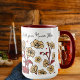 Modern Berry and Brown FLORAL Designed Mug, PERSONALIZE This Bone China Mug with the Names of your Loved Ones, Elegant Script Text pulls this Design together and a one of a Kind KEEPSAKE. Simply use the EDITING TOOL On the Product Page of this Product and enter your Names in the TEXT BAR, (You may need to back space to remove any of the designers text,)