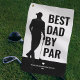 Hit a hole-in-one this father's day with our unique black & white golf towel. Not only does it feature an elegant silhouette of a golfer but also proudly displays the saying, 'best dad by par'. To make it even more meaningful, it comes with a cute heart symbol, and for that extra special personal touch, we offer to add the child's name. Show your dad how much you appreciate him with this one-of-a-kind golf accessory.
