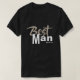 Modern Best Man T shirt. Contemporary text in brownish grey and white with wedding date in classic block text at bottom right. The wedding date can be removed by clearing the text field, or changed to personalise with the best man's name or bride and groom initials.