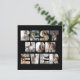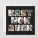 Modern and simple design featuring 11 square photographs of your choice, using the letters of BEST MOM EVER on a black background. A wonderful gift to give to your mum during her birthday, Christmas or Mother's day celebration with your name and message at the back.