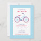 Modern Bicycle Blue and Red Birthday Invitation